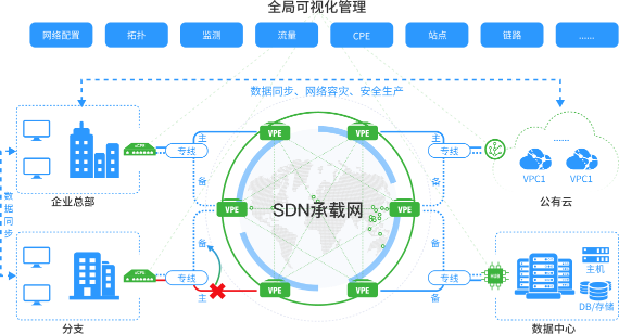 SD-WAN 是一种全新的网络管理方式,是 SDN 技术在广域网的运用。通过中心化的控制系统调控多样的物理网络,构建可靠安全的企业专网,解决企业因跨省跨市等远距离传输带来的网络问题。